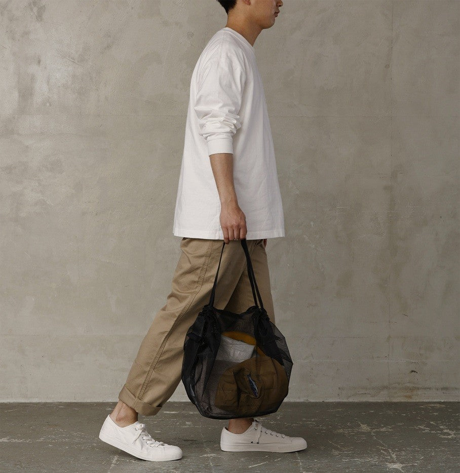 Die schwarze Shupatto Mesh Bag überzeugt mit einem cleanen, modernen Look und ist ein praktisches Statement für japanisches Design und smarte Funktionalität.