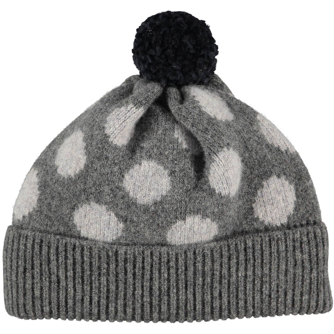 Catherine Tough Mütze Bommelmütze aus Lammwolle Monochrome grau polkadot bei Nauli and Stories