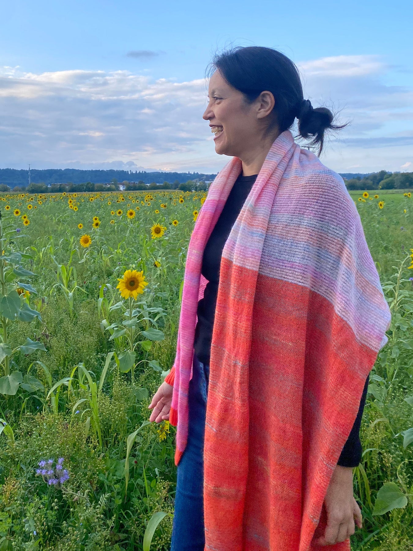 Wunderschöner Schal „Bubblegum“ in knalligem Orange und kräfigem Pink, das in wunderschönem zarten Farbverlauf sanft ineinander übergeht. Hergestellt aus einer hochwertigen Mischung von weicher Lammwolle (80%) und luxuriösem Kid-Mohair (20%), bietet dieser Schal nicht nur einen beeindruckenden Look, sondern auch unvergleichlichen Komfort.