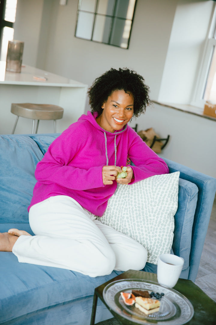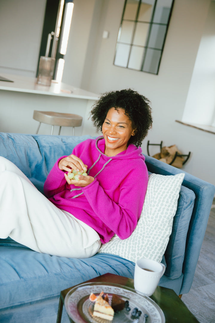 Der Corry Hoodie Sweater in Honesty von Eribé Knitwear ist ein echter Hingucker. Mit seinem kräftigen Pinkton setzt er ein klares Statement und verbindet moderne Lässigkeit mit hochwertiger Verarbeitung.