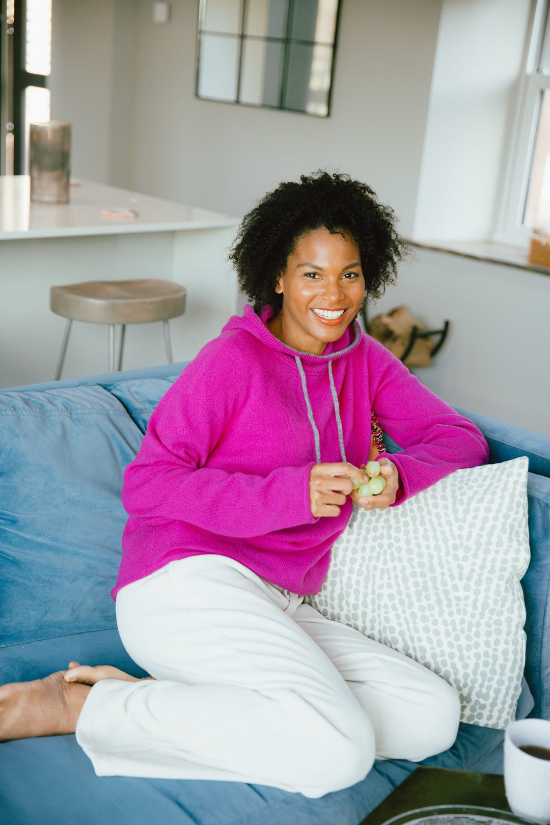 Corry Hoody Sweater Honesty – Pinker Kapuzenpullover aus reiner Merinowolle