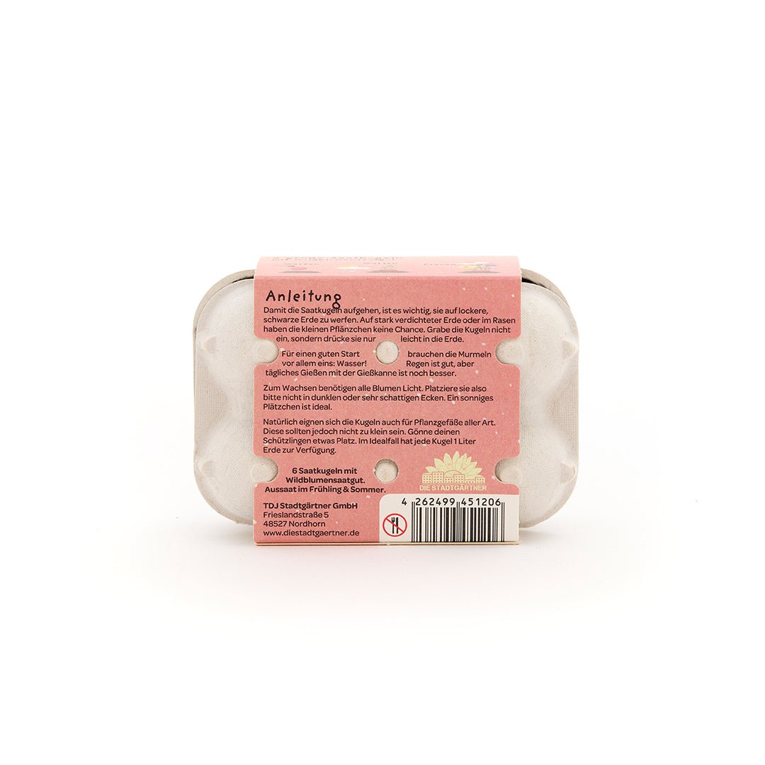 Jede Saatkugel enthält eine bunte Mischung aus Wildblumensamen, eingebettet in nährstoffreiche Erde. Einfach in einen Topf, Balkonkasten oder direkt in den Garten legen, leicht angießen und nach wenigen Wochen sprießen farbenfrohe Wildblumen. Kinderleicht in der Anwendung, wunderschön im Ergebnis.