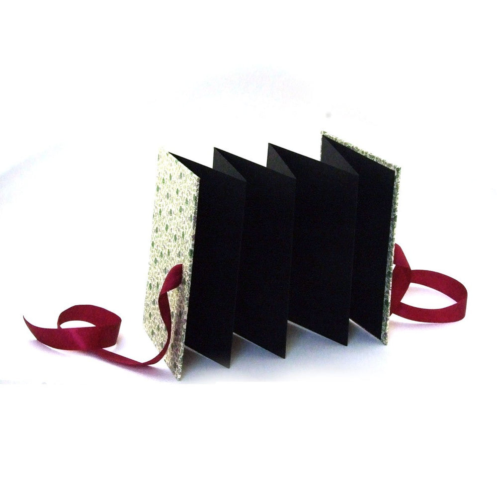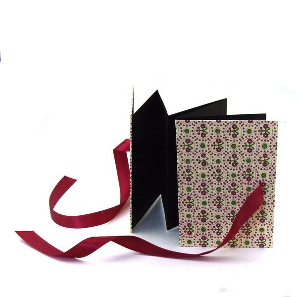 Leporello by Nauli are small folding books whose interior consists of an accordion made of high-quality, acid-free photo cardboard. The outside is solid bookbinding cardboard covered with decorative paper. A festive satin ribbon serves as a closure.